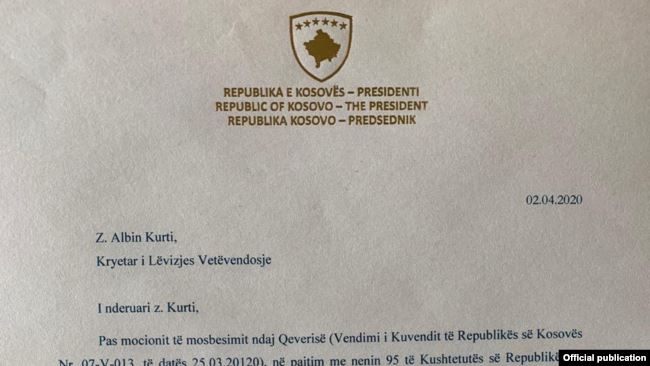 Thaçi i kërkon lëvizjes Vetëvendosje emrin e kandidatit për formimin e qeverisë së re April 2, 2020 Presidenti i Kosovës, Hashim Thaçi, i kërkoi të enjten kryetarit të lëvizjes Vetëvendosje, Albin Kurti, … Read More twitterFollowfacebooklinkedin LEXO MË SHUMË