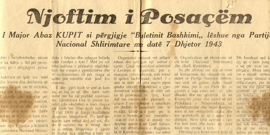 PARTIA KOMUNISTE KA BASHKËPUNUAR ME OKUPATORËT NEPERMJET AGJENTËVE TE SAJ November 21, 2016 -Njoftim i posaçëm i 24 Dhjetorit 1943 i Major Abaz KUPIT si përgjigje Buletinit Bashkimi … Read More twitterFollowfacebooklinkedin LEXO MË SHUMË