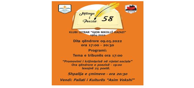 Qoftë jetëgjatë Mitingu i Poezisë në Gjakovën tonë krenare! – Nga LULZIM LOGU May 28, 2021 Në vigjilje të Mitingut të 57-të të Poezisë në Gjakovë: Ka shumë vjet që ndjej … Read More twitterFollowfacebooklinkedin LEXO MË SHUMË