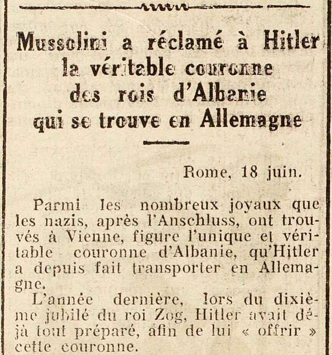 La Charente (1939) – Hitleri kishte planifikuar t’i dhuronte kurorën e Skënderbeut mbretit Zog, por Musolini i kërkoi që ta shtyjë këtë operacion May 31, 2019 Burimi : gallica.bnf.fr / Bibliothèque nationale de France Nga Aurenc Bebja*, Francë – 31 Maj 2019 … Read More twitterFollowfacebooklinkedin LEXO MË SHUMË