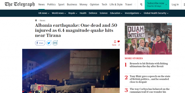 “Më i fuqishmi ndër dekada”, situata në Shqipëri pas tërmetit kryeartikull në mediat ndërkombëtare November 26, 2019 Tërmeti i rënë në orët e para të mëngjesit në vendin tonë ka qënë kryefjala … Read More twitterFollowfacebooklinkedin LEXO MË SHUMË