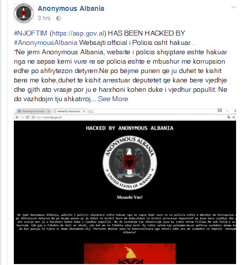 Anonymous Albania sulmon faqen e Policisë së Shtetit: Duhet të arrestoni deputetët, por ju… July 8, 2017 Faqja zyrtare e Policisë së Shtetit është sulmuar në orët e vona të ditës së … Read More twitterFollowfacebooklinkedin LEXO MË SHUMË