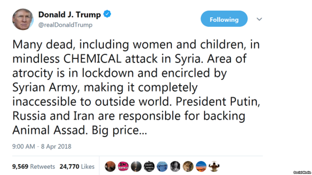 Trumpi mban përgjegjës Putinin, Rusinë për sulmin në Siri April 8, 2018 Presidenti Trump fajësoi Presidentin rus Vladimir Putin dhe Iranin për “sulmin e palogjikshëm kimik” në … Read More twitterFollowfacebooklinkedin LEXO MË SHUMË