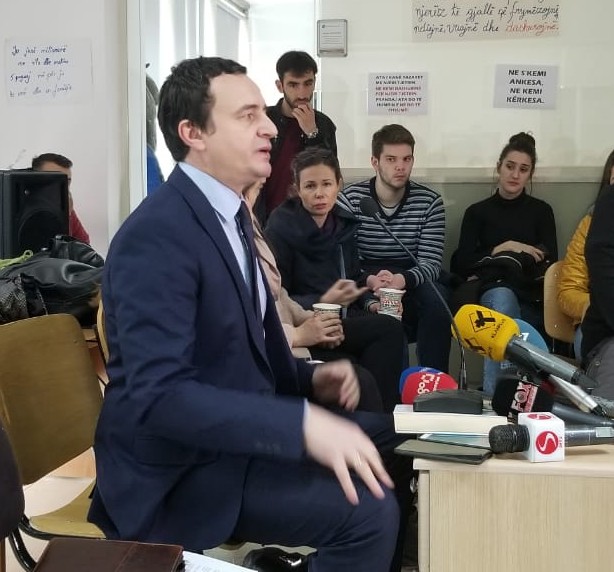 Albin Kurti takon studentët dhe pedagogët e Shkencave Sociale: Protesta juaj është e drejtë February 4, 2019 Albin Kurti, kreu i Lëvizjes Vetëvendosje ka shkuar sot pranë Fakultetit të Shkencave Sociale në … Read More twitterFollowfacebooklinkedin LEXO MË SHUMË