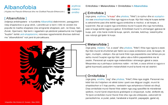 Eritrofobia + Melanofobia + Ornitofobia = Albanofobia – Esé nga SENAD GURAZIU August 25, 2022 (Kujdes me Pseudo-Shkencat dhe me Grafikat Pseudo-Shkencore) [ Albanofobia ] (ndjenja antishqiptare – e kundërta … Read More twitterFollowfacebooklinkedin LEXO MË SHUMË