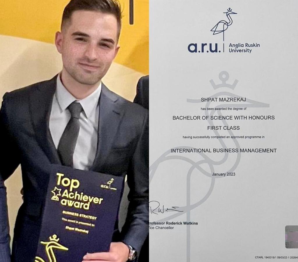Historia e suksesit e Shpat Mazrekajt në Universitetin Anglia Ruskin Londër January 19, 2024 Shpat Mazrekaj ka përfunduar studimet me një BSc në ARUL, Anglia Ruskin University London. Anglia … Read More twitterFollowfacebooklinkedin LEXO MË SHUMË