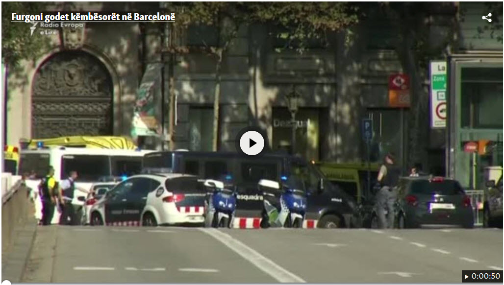 Sulm në Barcelonë, policia e trajton si terrorist August 17, 2017 Një furgon është përplasur në mesin e këmbësorëve në Las Ramblas në qendër të Barcelonës. … Read More twitterFollowfacebooklinkedin LEXO MË SHUMË