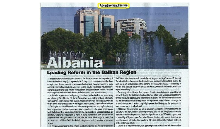 Shkrimi në ‘The Economist’ – PD: Rama pagoi qindra milionë lekë për të blerë lëvdata për vete January 18, 2016 “Edi Rama ka shpenzuar qindra milionë lekë të taksapaguesve shqiptarë për të blerë 8 faqe … Read More twitterFollowfacebooklinkedin LEXO MË SHUMË