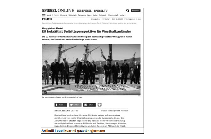 ‘Der Spiegel’: Nëse nuk vjen BEja në Ballkanin Perëndimor, atëherë do të shkojnë të rinjtë e rajonit në vendet e BE-së July 14, 2017 Gazeta gjermane “DER SPIEGEL”, në një analizë të saj ka komentuar punimet e Samitit të … Read More twitterFollowfacebooklinkedin LEXO MË SHUMË