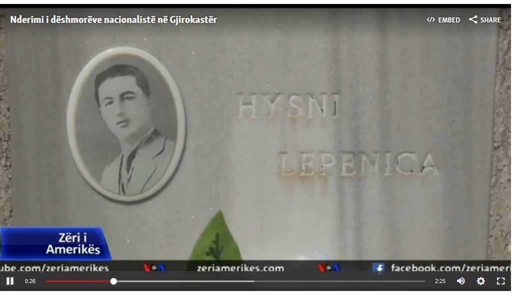 Zëri i Amerikës: Nderimi i dëshmorëve nacionalistë në Gjirokastër (video) September 14, 2019 Në varrezat e dëshmorëve nacionalistë në Grehot të Gjirokastrës u kryen të shtunën nderime për … Read More twitterFollowfacebooklinkedin LEXO MË SHUMË