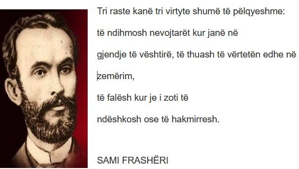 Fjalë të urta – Sami Frashëri: Tri raste kanë tri virtyte shumë të pëlqyeshme November 23, 2020 Tri raste kanë tri virtyte shumë të pëlqyeshme: të ndihmosh nevojtarët kur janë në gjendje … Read More twitterFollowfacebooklinkedin LEXO MË SHUMË