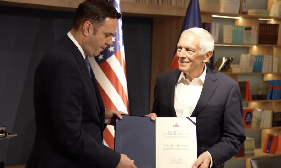 Wesley Clark nderohet me dekoratën “Dr. Ibrahim Rugova” nga Lidhja Demokratike e Kosovës