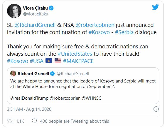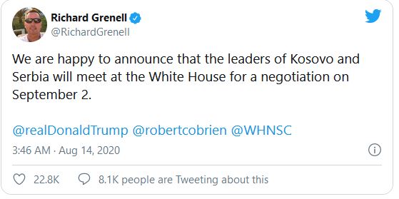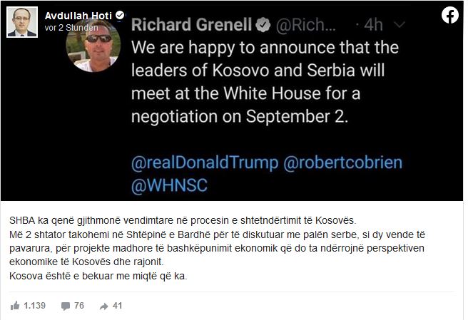 Takim Kosovë-Serbi në Shtëpinë e Bardhë më 2 shtator