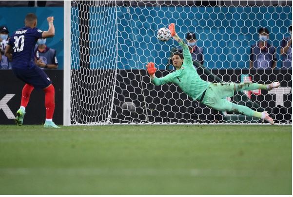 Sipas tifozëve francezë, të cilët ende nuk e kanë gëlltitur disfatën e papritur, portieri i Zvicrës nuk ka pasur asnjërën prej këmbëve në vijën fatale, në penalltinë e humbur të Mbappe.