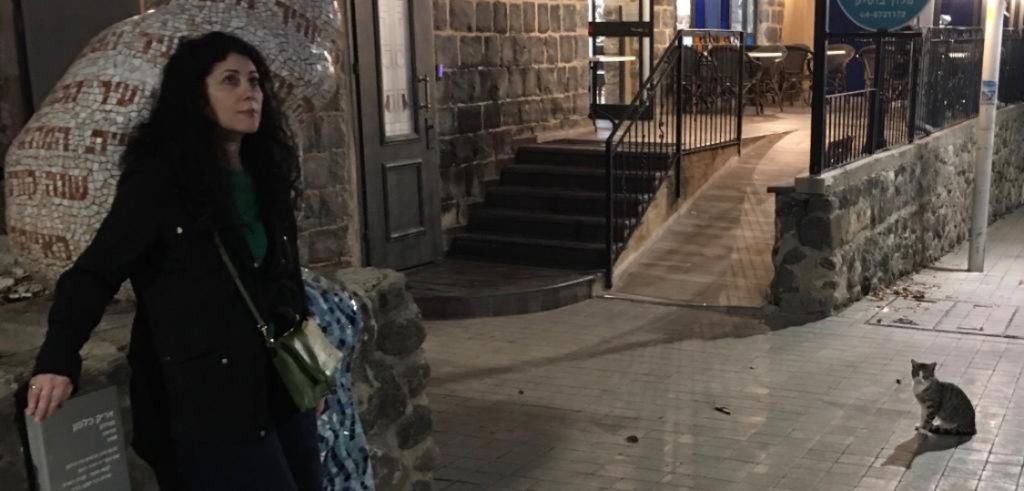 Eda dhe macja në rrugë, në Tiberias, Izrael, nëntor 2022,