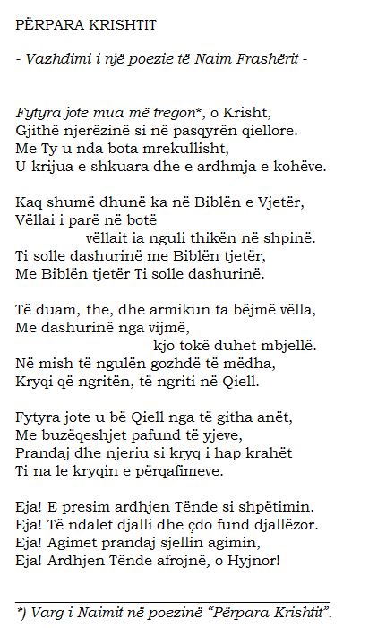 ringjallje tjetër veç tëndes. Të harrohen kryqi, krimet