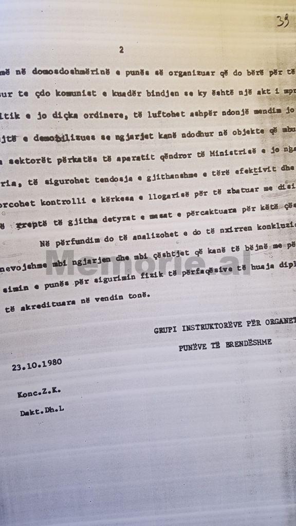 Për periudhën 1 janar 1955, 30 mars 1957, t’i thuhet se shpërblimi i caktuar nuk i jepet, për arsye se nuk ka vepruar sipas udhëzimeve tona, dhe si konsekuencë ka shkëputur lidhjet me zbulimet e huaja dhe nuk ka treguar interesim për zbatimin e detyrave të ngarkuara.
