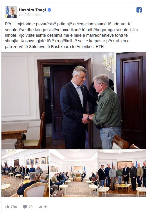 Thaçi e Haradinaj takohen me një delegacion të senatorëve e kongresistëve amerikanë