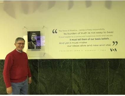 Në hyrje të ndërtesës së Zërit të Amerikës, “Zërit të së Vërtetës”, siç njihet nga shumë shqiptarët –si vizitor – 2020. “Zëri i Amerikës ka mbi supe një përgjegjësi të madhe si mbartës i së vërtetës. Barra për të thënë të vërtetën nuk është e lehtë të mbartet…”, ka thënë ndër të tjera Presidenti Xhon Kenedi në fjalimin me rastin e 20-vjetorit të Zërit të Amerikës, në vizitën e tij në kryeqëndrën e VOA-s, 26 Shkurt, 1962. Për 30-vjetë jam munduar ta mbroj të vërtetën, si një përgjegjësi morale dhe si një barrë shoqërore.