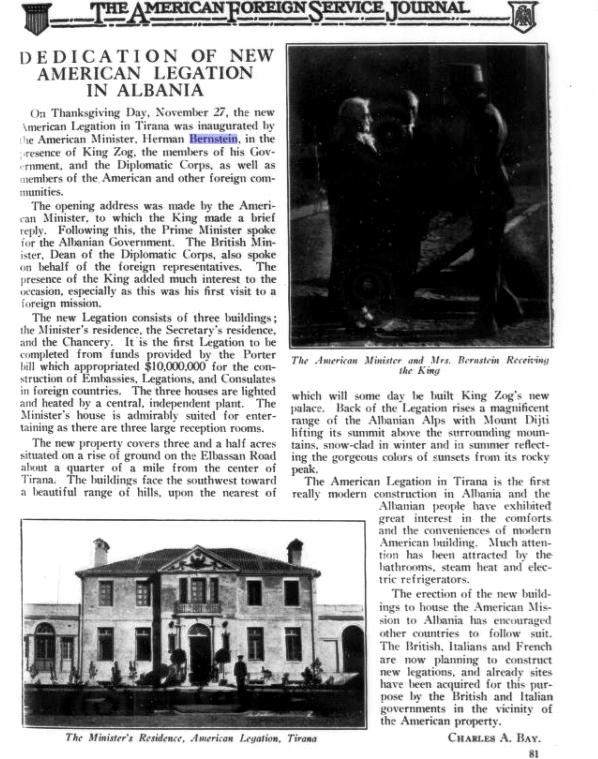 The American Foreign Service Journal (1931)- Prania e Mbretit Zog në përurimin legatës së re amerikane në Tiranë, një eveniment i veçantë për këtë arsye (Foto)