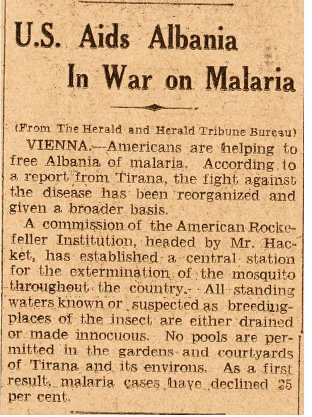The New York Herald (1932)- SHBA ndihmon Shqipërinë në luftën kundër malaries