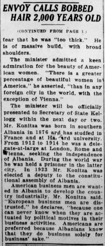 The Washington Post (1926) – “Biznesmenët amerikanë, në krahasim me ata europianë, preferohen në Shqipëri për këtë arsye…” – Një rrëfim i rrallë dhe intim i Faik Konicës