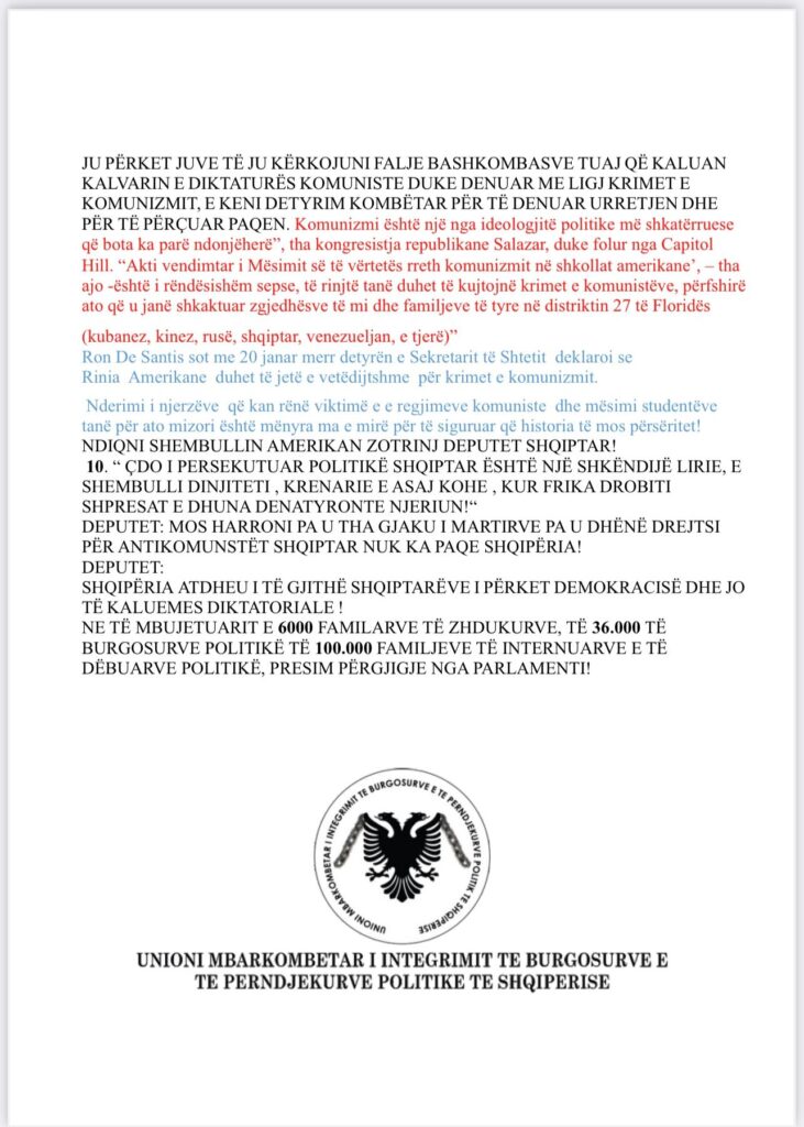 THIRRJE: BASHKOHUNI KONGRESIT AMERIKAN, DËNONI KRIMET E KOMUNIZMIT – Nga BESIM NDREGJONI