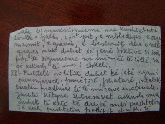Trakti politik i Arbnorit për Partinë Social Demokrate shkruar në letra cigareje dhe nxjerrë fshehurazi nga burgu