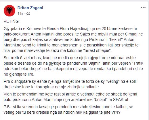 Trupa gjykuese për Saimir Tahirin, reagon Dritan Zagani: Gjyqtarja që më la në burg në shkelje të ligjit, do vendosë për ish-ministrin