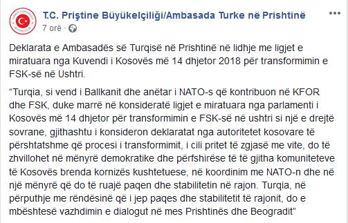 Turqia mbështet formimin e Ushtrisë së Kosovës