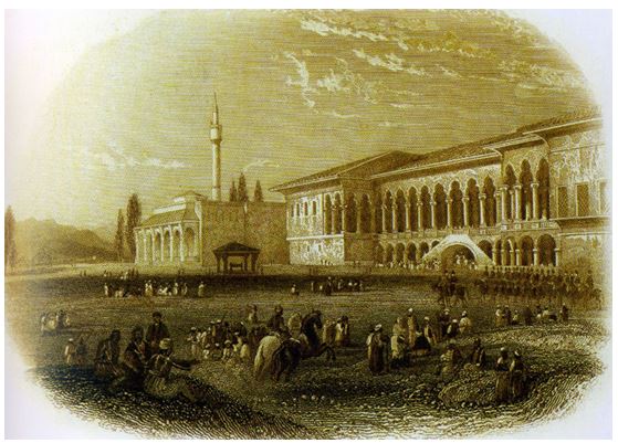 Gravurë e Sarajeve të Ali Pashës në Janinë nga Edward Francis Finden (1791 – 1657) mbështetur në tablonë e piktorit William Purser.