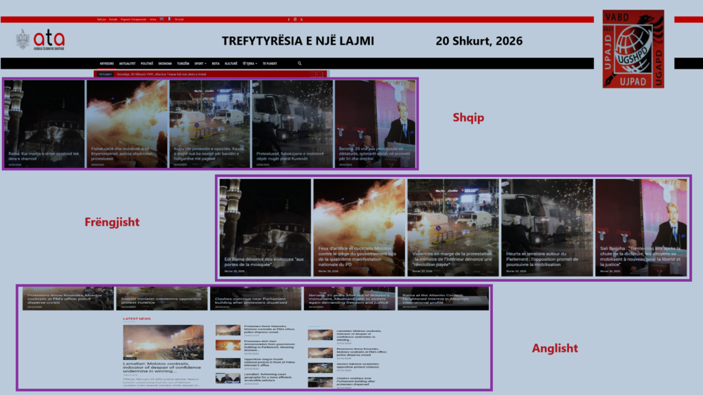 Mes pakënaqësisë me ndërkombëtarët dhe të një kaosi të mirëfilltë mendor, por me urrejtje edhe pse nga distanca kryeministri Rama e ka përcjellë në mënyrën më vulgare dhe me të shëmtuar zhvillimin e protestës se qytetarëve të 20 Shkurtit, 2026. Kjo protestë e cila ishte edhe një përkujtimore e përvjetorit te 35-te të rrëzimit të simbolit të diktatorit Hoxha dhe diktaturës komuniste, si atëherë kur Rama e humbi protagonizmin historik edhe sot e përfaqësoi si mbështetës ideologjik të globalizmi të sotëm të elitave antidemokratike. Këtë rradhë si kryeministër Rama nuk mungoi të bënte nxitjen dhe provokimin institucional përmes lajmeve të Ministrisë së Brendshme kur edhe pa filluar protesta thuhej se: -” “Policia e Tiranës ka deklaruar se nuk merr përsipër mbarëvajtjen e tubimeve, duke marrë shkas nga dhuna e ushtruar gjatë dy protestave të kaluara të organizuara nga Partia Demokratike.”