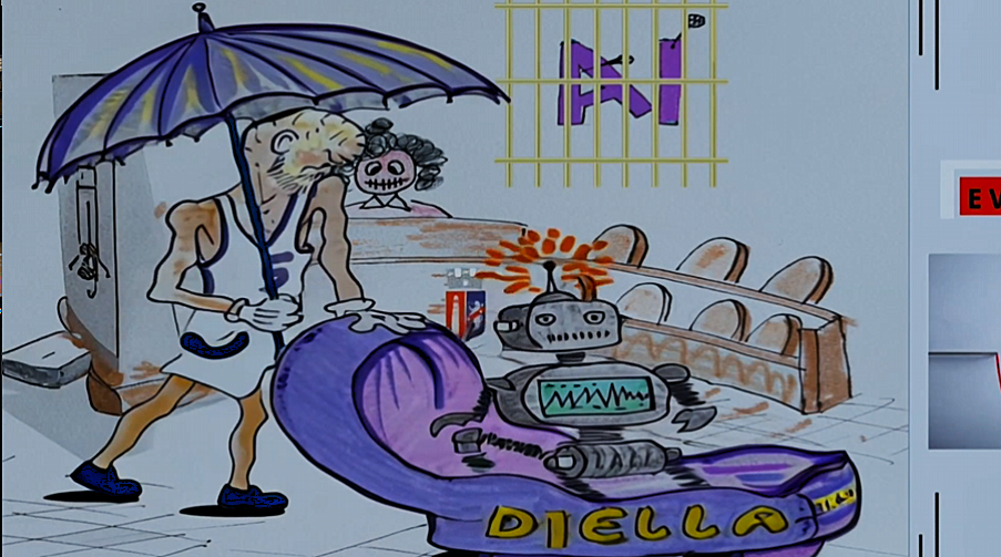 Më pas shton:-“Ajo e njeh linjën e partisë. Pra, është shumë e rëndësishme”, dhe më tej del aty ku duhet tek qëllimi që:-… të detyrohem që t’ju tregoj për herë të parë se Diella është shtatzënë. Ajo është në pritje të 83 fëmijëve. Çdo komplet për një anëtar të parlamentit tonë që do t’u shërbejë deputetëve si asistent që do të marrë pjesë në seancat parlamentare që do të mbajnë shënime të gjithçkaje që po ndodh që do të informojë dhe do t’u sugjerojë deputetëve se si të reagojnë që do të kenë të gjitha njohuritë e këta fëmijë do të kenë të gjitha njohuritë e saj për BE-në uh legjislacionin e BE-së dhe gjithçka dhe thjesht diçka që do të donit shumë si turk kur do të shkonit për një kafe sepse uh dhe kemi kafe shumë më të mirë se në Gjermani siç e dini. Pra, rreziku është që të shkojmë për kafe dhe ju harroni të ktheheni në punë. uh kur të ktheheni uh këta fëmijë, ky fëmijë do t’ju tregojë se çfarë është thënë kur nuk ishit atje dhe nëse emri juaj është përmendur dhe nëse duhet të kundërsulmoni dikë që ju përmendi për arsye të gabuara”.