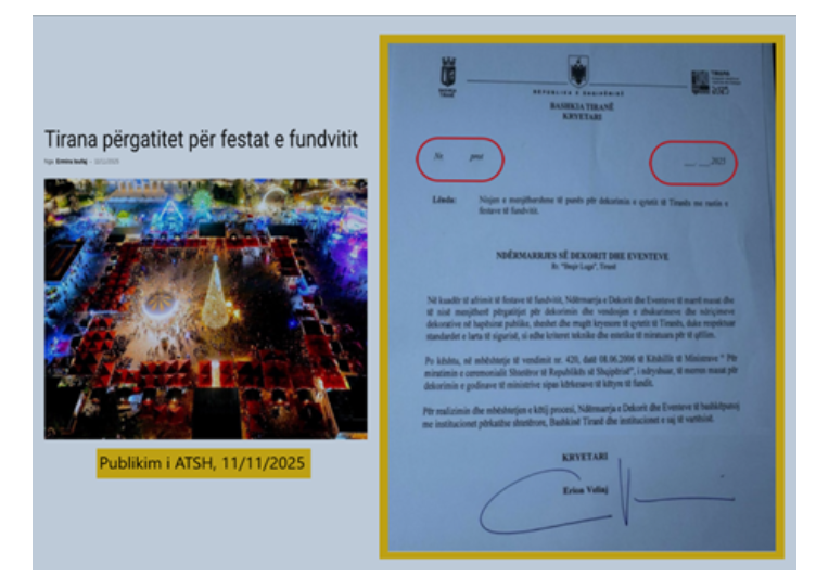 Pas kësaj hyrje le të shkojmë tek dokumenti flagrant i një firme që i autorizon shpenzimet e festave për fund vitin 2025. Ai është një dokument të cilin e ka publikuar vetë ATSH.