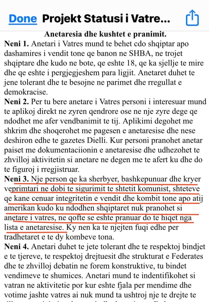 Eshte interesante se, qysh nga zgedhja e tij, kryetari i Vatres eshte kontestuar ne vazhdimesi nga anetaresia e Vatres dhe qe nga viti 2021, pra me pak se 5 vite, Vatra numeron 8 procese gjyqesore, padi e kunderpadi, keto ne gjykatat me te larta, si ne Gjykaten Federale dhe Gykarten Supreme etj. Pra i bie qe shumicen e kohes e tij si kryetar i Vatres, ai e ka kaluar ne gjyqe me vatrane. Ne fakt e gjithe kjo kohe, finance dhe energji vatrane, mendoj se duhej shpenzuar ne Washington per Shqiperine dhe Kosoven.