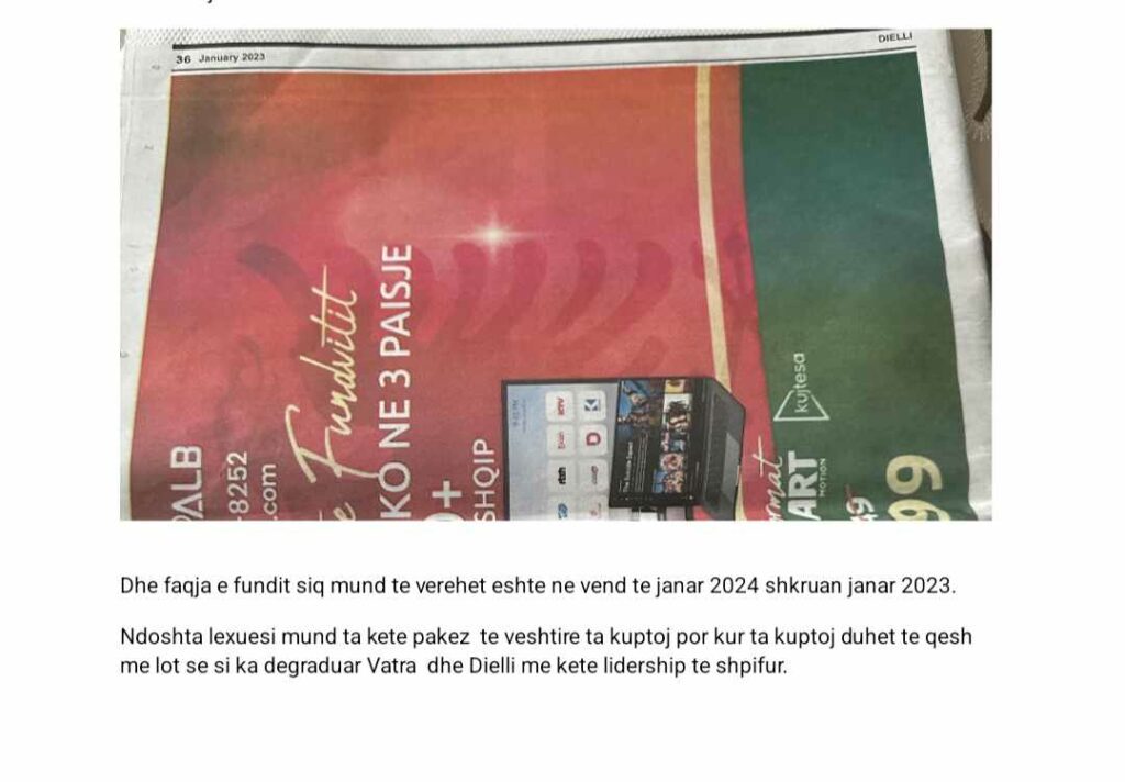 Por faqja e parë e Gazetës Dielli thotë “Janar 2024, ndërsa faqet e tjera thonë gazeta Dielli Janar 2023. Këtu lidërshipi “thotë se vetëm faqja e parë e Gazetës i takon 2024-ës dhe të gjitha faqet e tjera janë një vit pas Janar 2023.
