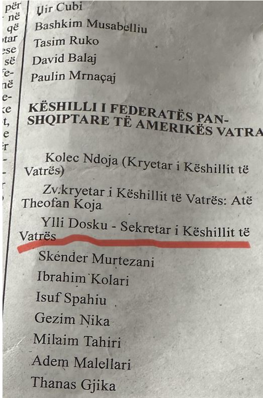 Shiheni, shfletoni gazetën e dhjetorit 2023, jam ende sekretar i Këshillit të Vatrës, ndërsa në fund të muajit shkurt, në gazetën e muajit janar që sapo ka dalë emrin e eleminojnë nga gazeta Dielli dhe vendosin një njeri tjetër që mund të jetë vetëm servil i klikës Ylli Dosku.