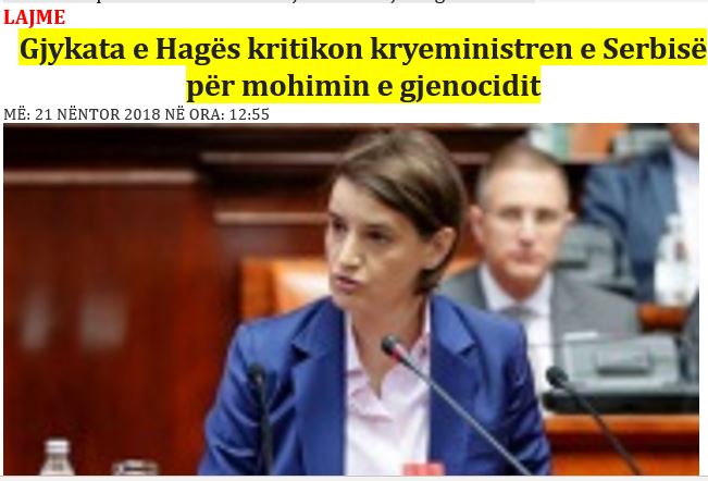 Gjykata e Hagës kritikon kryeministren e Serbisë për mohimin e gjenocidit