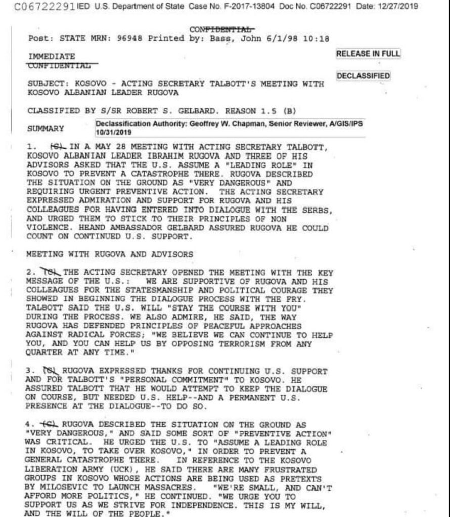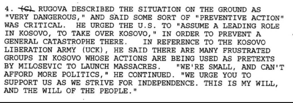 2. Dr. Rugova edhe në këtë takim ka kërkuar rolin prijës dhe aksion parandalues të SHBA-ve