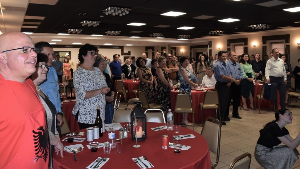Në fillim u kënduan dy Himnet Kombëtare, ai Shqiptar dhe ai Amerikan. Presidenti i Komunitetit, Edon Shaqiri, pasi do t’i uronte mirëseardhjen të githëve, do të fliste për rëndësinë e kësaj date dhe lavdinë e saj dhe do t’ia jepte fjalën “të Ftuarit të Nderit”, shkrimtarit Visar Zhiti.