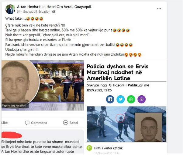 “Vis Martinaj është në Amerikën Latine, i maskuar si Artan Hoxha”- Gazetari publikon mesazhet: Çfarë sjell ora, nuk sjell moti!