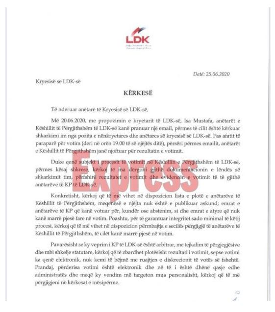 Vjosa Osmani i shkruan LDK-së, kërkon t’i shohë votat me të cilat u shkarkua