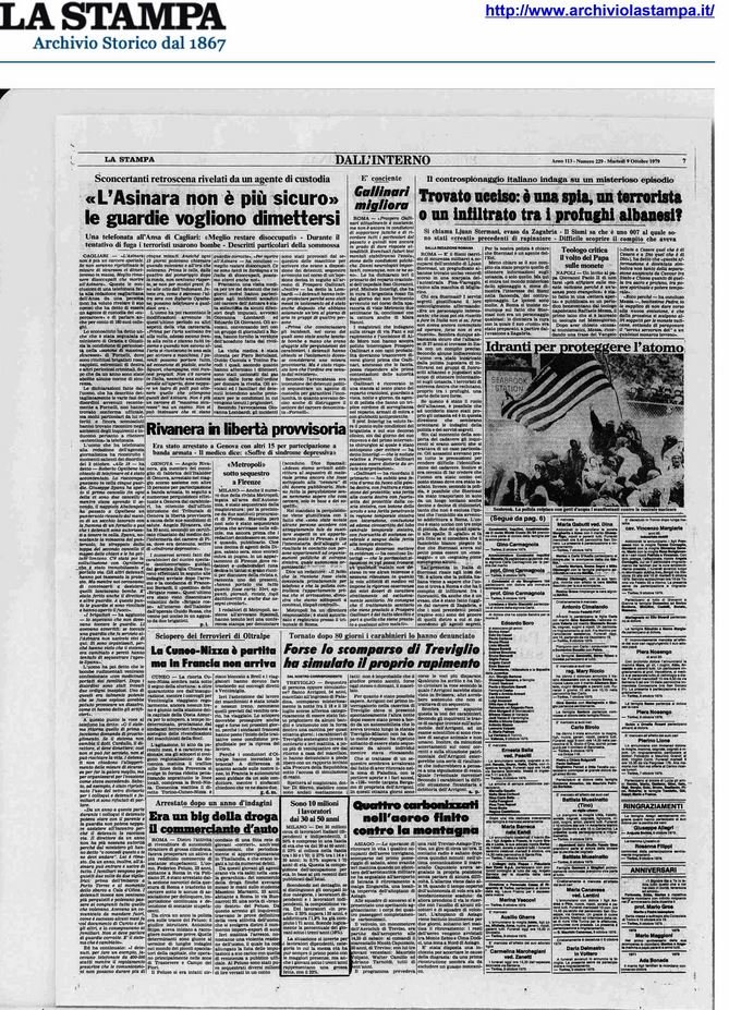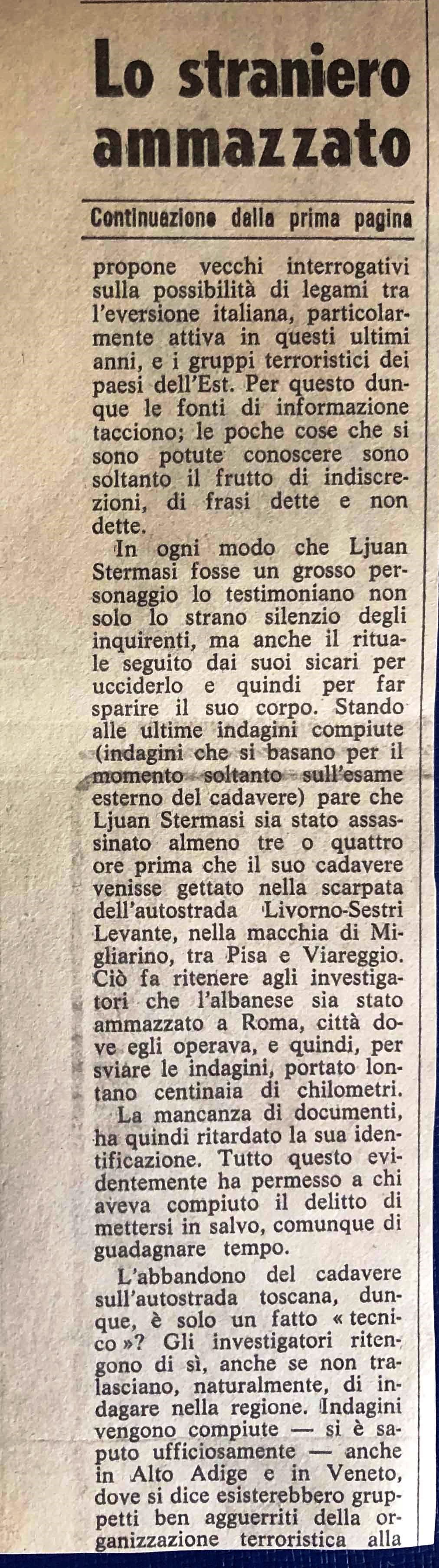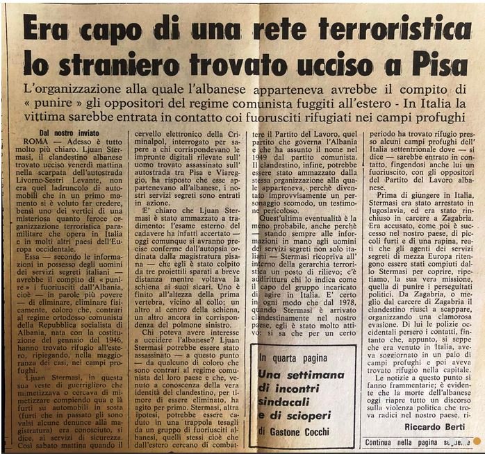 VRASJET E SIGURIMIT NË VITET 1970-Gazetat italiane: Luan Stermasi, një 007 shqiptar, detyra e tij spastrimi i të arratisurve