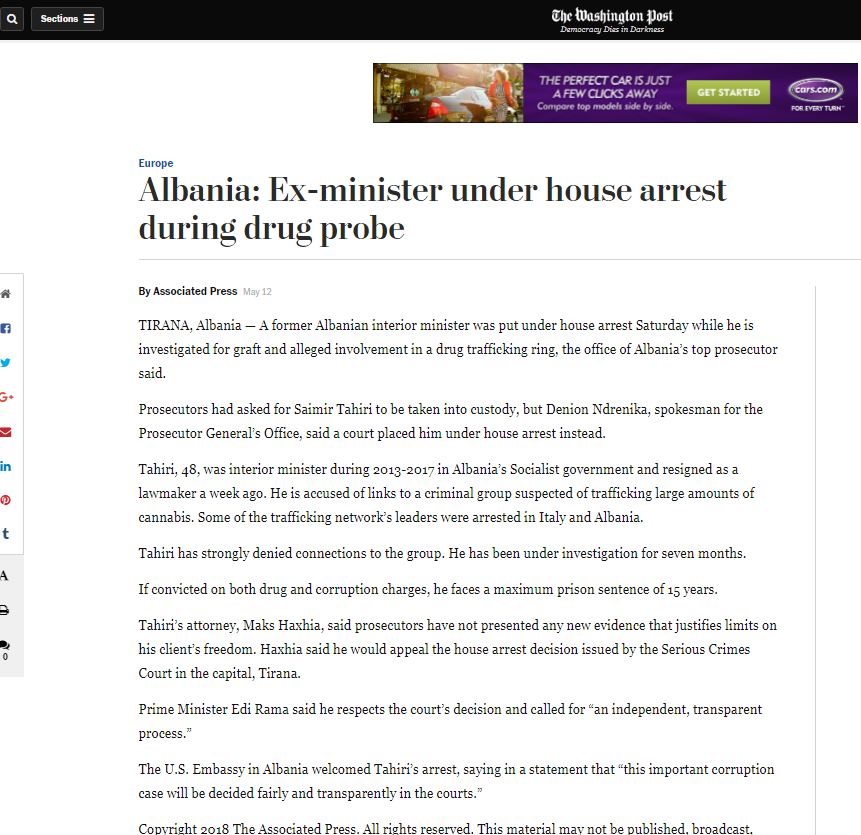 “Washington Post”: Saimir Tahiri rrezikon 15 vite burg