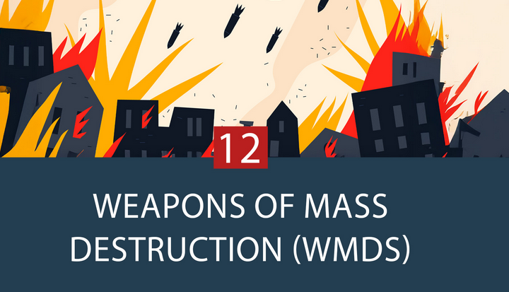 • Chemical weapons use toxic substances that affect the nervous system, lungs, and vital organs. Known examples include sarin, VX, and mustard gas.
