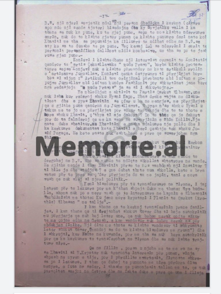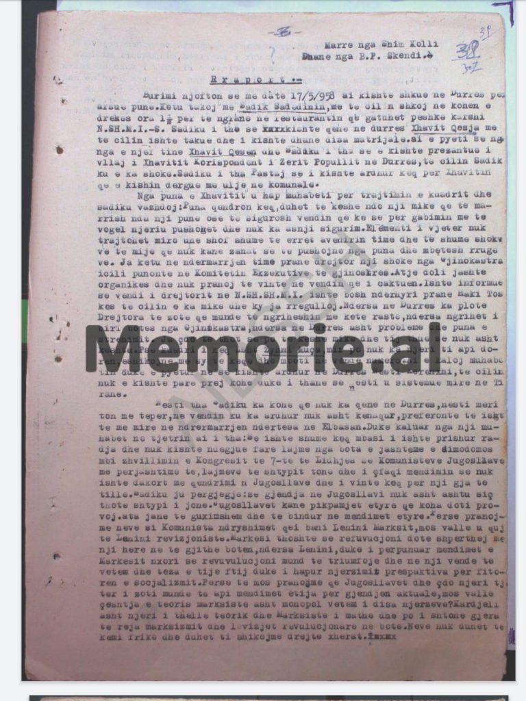 Për periudhën 1 janar 1955, 30 mars 1957, t’i thuhet se shpërblimi i caktuar nuk i jepet, për arsye se nuk ka vepruar sipas udhëzimeve tona, dhe si konsekuencë ka shkëputur lidhjet me zbulimet e huaja dhe nuk ka treguar interesim për zbatimin e detyrave të ngarkuara.