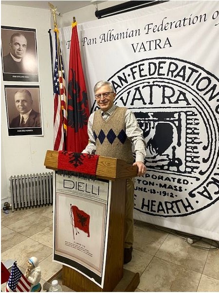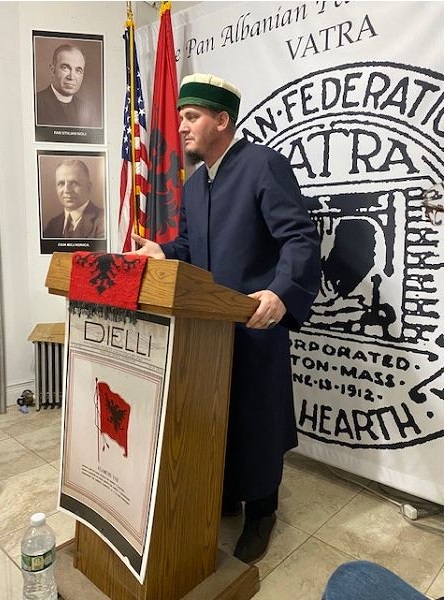 Udhëheqsi i Qendrës Bektashiane, Shqiptaro-Amerikane në Detroit të Shteteve të Bashkuara, i Nderuari Eliton Baba Pashaj duke folur në Vatër, 3 Dhjetor, 2022