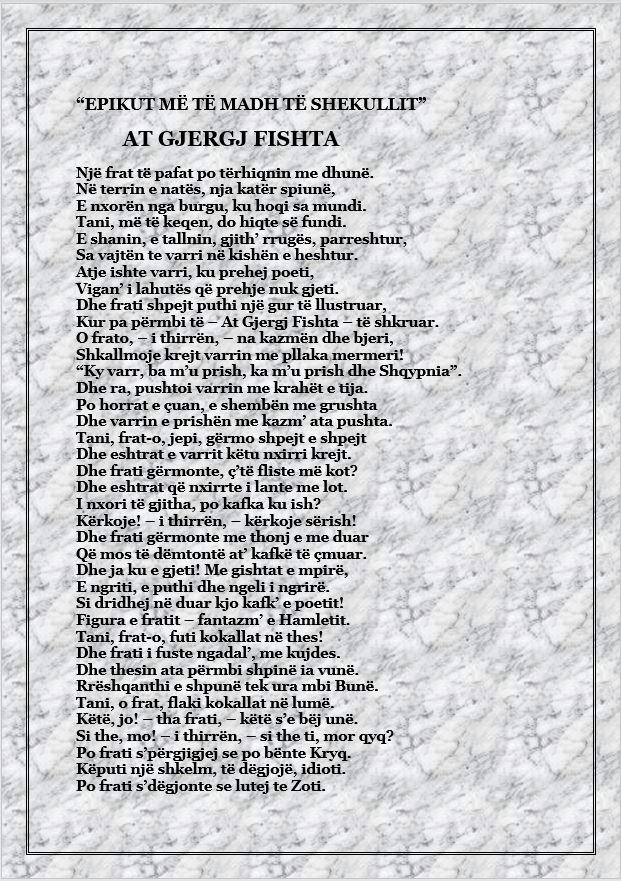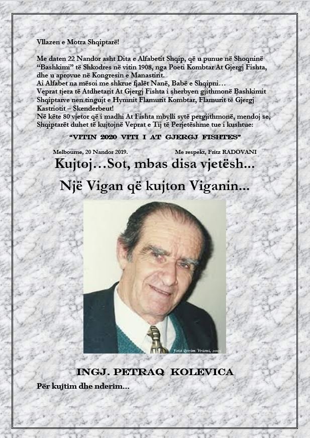 XXXIV – 2020 VITI I AT GJERGJ FISHTËS – Ingj. PETRAQ KOLEVICA: EPIKUT MË TË MADH TË SHEKULLIT AT GJERGJ FISHTA – Përgatiti Fritz RADOVANI