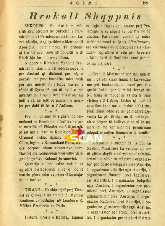 Ky vend primitiv, i cili vetëm prej pak kohësh është një shtet i pavarur, tani qeveriset nga Ahmet Zogu, Mbreti i shqiptarëve, administrimi i të cilit zhvillohet në mënyra shumë të thjeshta,” shtoi ai.