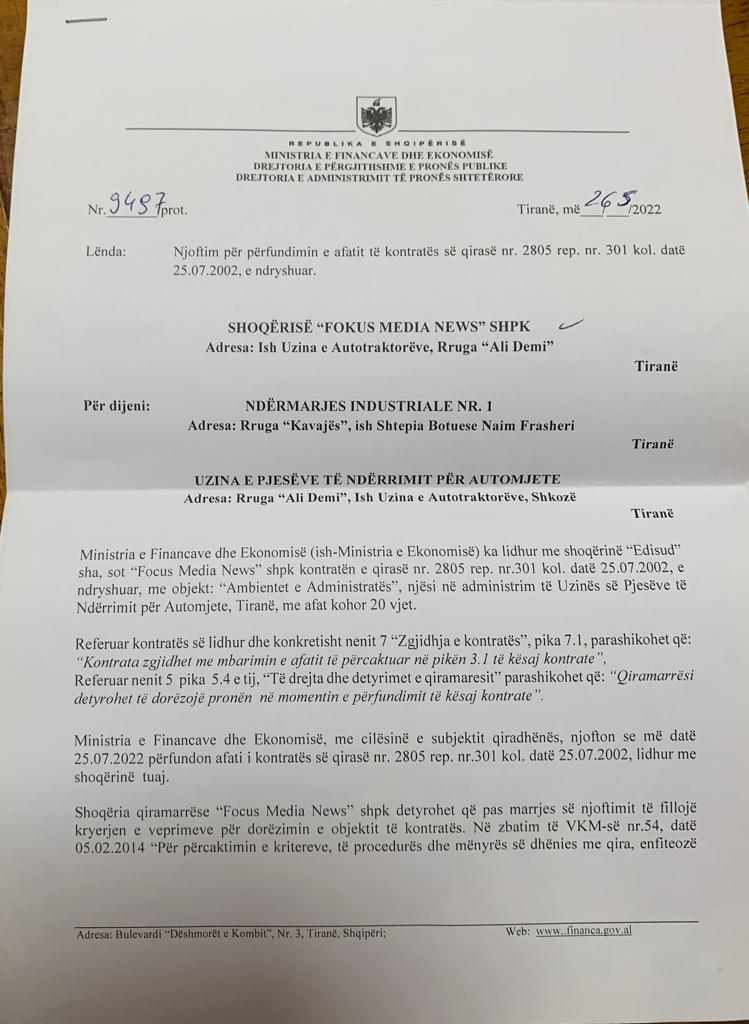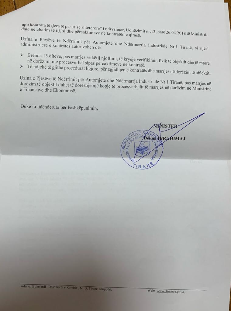 Vetë letra e dërguar paraqet problematikën se si është vepruar në shkelje të mundshme të ligjit me investimet te Operatori i Sistemit të Transmetimit nga qeveria shqiptare dhe zv.kryeministrja, njëkohësisht ministrja e Infrastrukturës dhe Energjisë Belinda Balluku. Kjo e fundit është pezulluar nga detyra prej Gjykatës së Posaçme Kundra Krimit dhe Korrupsionit të Organizuar për akuzat nga SPAK për shpërdorim detyre dhe paracaktim tenderash në grup.